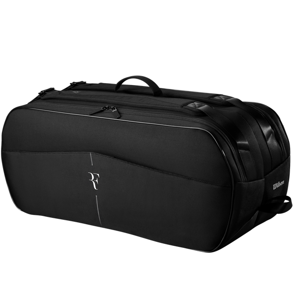 Flott utstyr fortjener spesiell behandling. Wilson RF Tournament Racket Bag er en pro-nivå bag med et design inspirert av de majestetiske sveitsiske Alpene, et tema som gjentas i Roger Federer-kolleksjonen. Denne tennisbaggen med pinstriper har RF-logoen og er detaljert med premium RF-glidelåspullere. Den er romslig nok til å romme opptil 9 racketer og inkluderer to side lommer. En Thermoguard-foring i én lomme beskytter racketer og strenger mot ekstreme temperaturer.